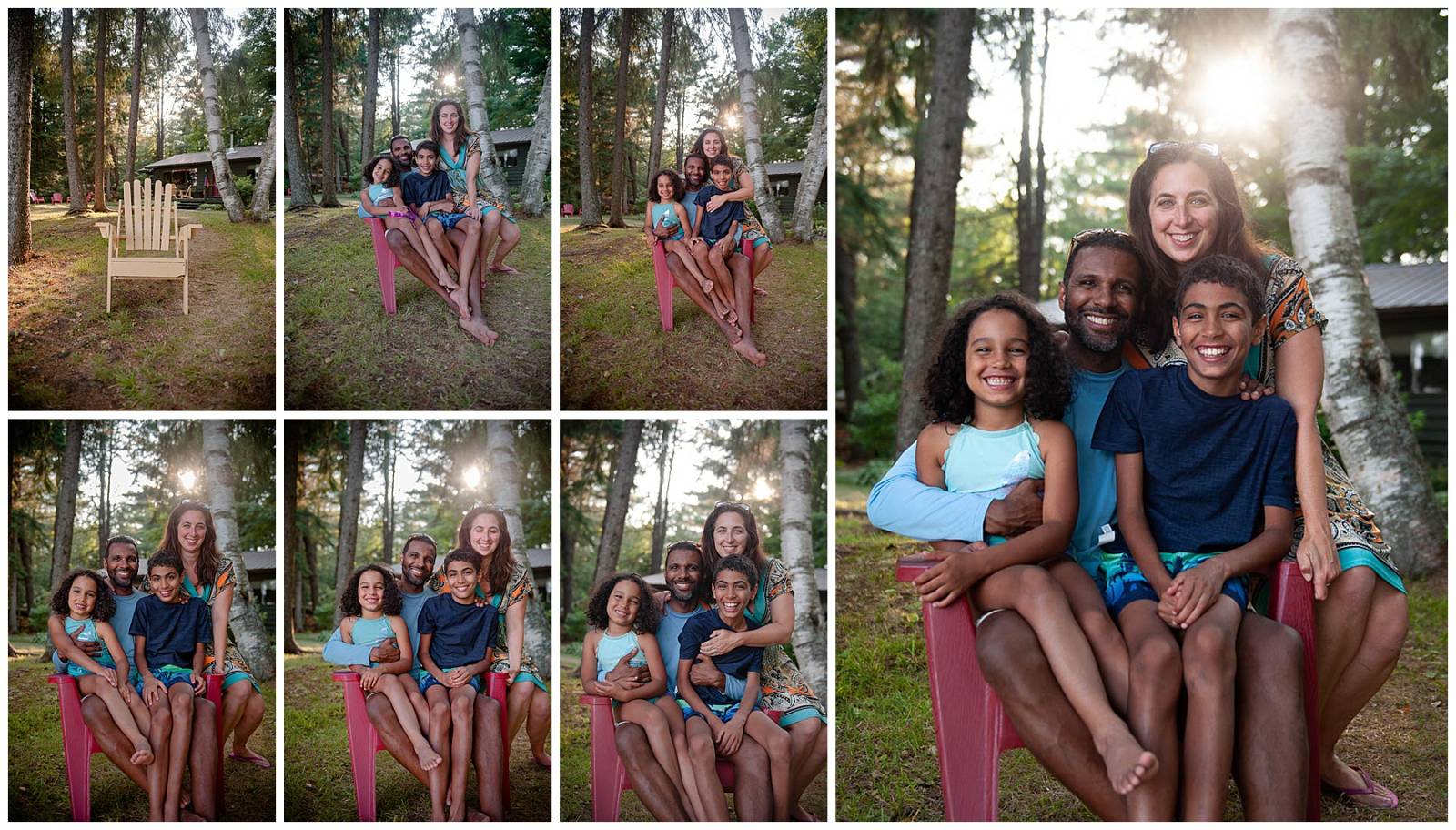 While I love how this picture turned out, taking my own family photos can be a stressful process. For instance, the yellow chair we first started to use to pile the family on literally broke into pieces. (Thankfully the homeowners were super cool and knew it was old.) We quickly swapped it out with a much sturdier red chair. I ran back and forth like a madwoman hoping that one would be a keeper. There was immense relief when I fell in love with the last image.