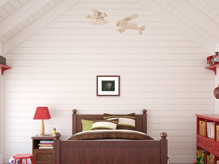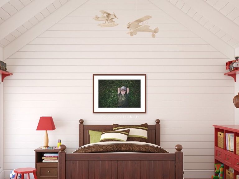 Here is an adorable boy’s room first with a framed 8×10 hung on the wall. It can’t really been seen from the foot of the bed and doesn’t make much of an impact on the room.