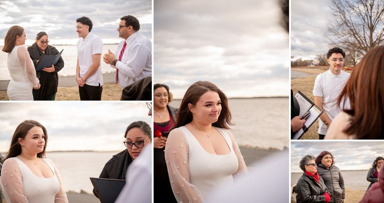 Walking away from the protective buildings and towards the water’s edge made things significantly colder but we moved quickly and they were married quickly. The groom’s mom, and my friend, Christina, was the officiant. She did an excellent job, way to go Mom.
